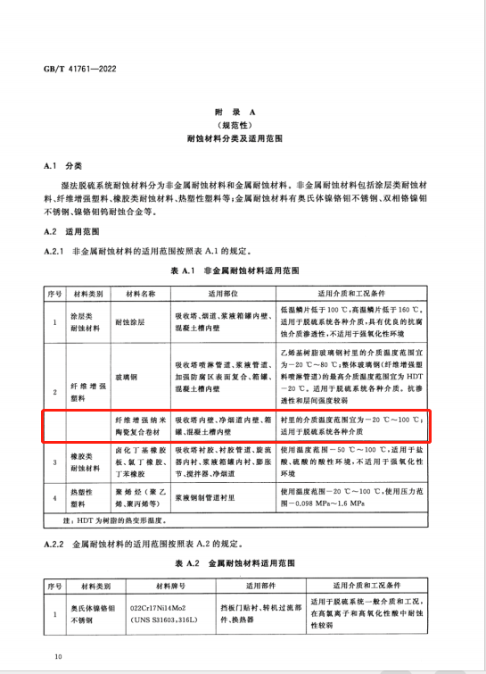 近日,安徽陶博士環保科技有限公司作為起草單位之一參與起草制定的國家標準《GB/T 41761-2022 濕法脫硫系統耐蝕材料全生命周期技術要求》于2023年05月01日正式施行。